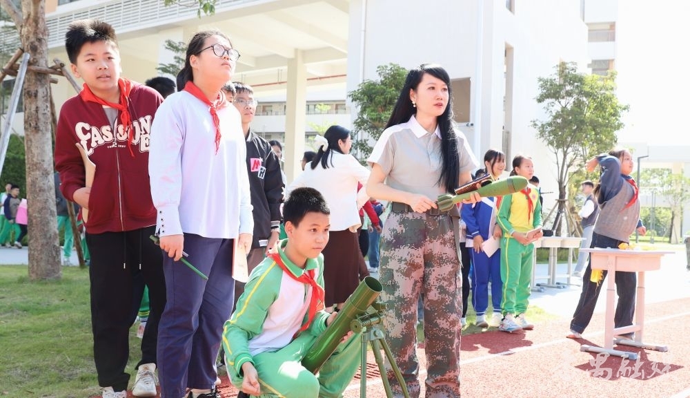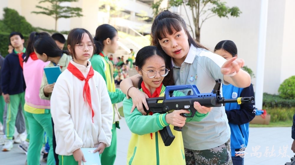 11月5日,番禺区星海青少年宫“流动少年宫”与广州市少年宫“星光计划”开展联合送教行动,走进广东番禺中学教育集团兴南学校。活动以“国防教育+艺术启蒙+心理关怀”为核心,通过“硬核军事体验+软性素养滋养”的创新模式,为该校师生带来一场全方位、沉浸式的素质教育盛宴,打造全方位育人新范式。